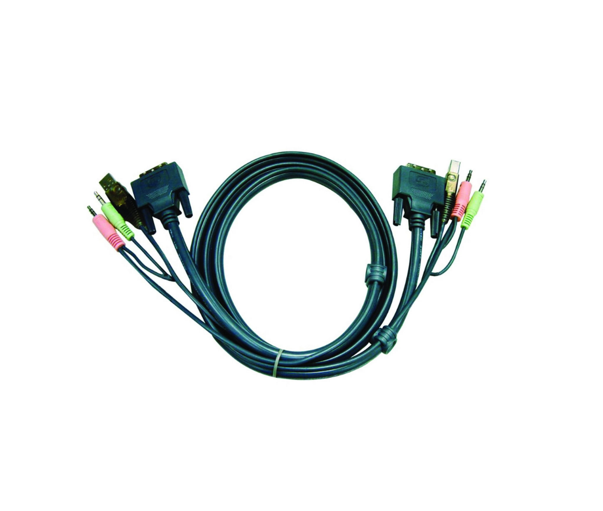 Wysokiej jakości kabel ATEN 2L-7D02U USB DVI-D Single Link KVM połączeniowy do KVM, dzięki służy do podłączenia między innymi konsoli DVI single link, USB oraz audio a do komputera DVI single link, USB oraz audio.
